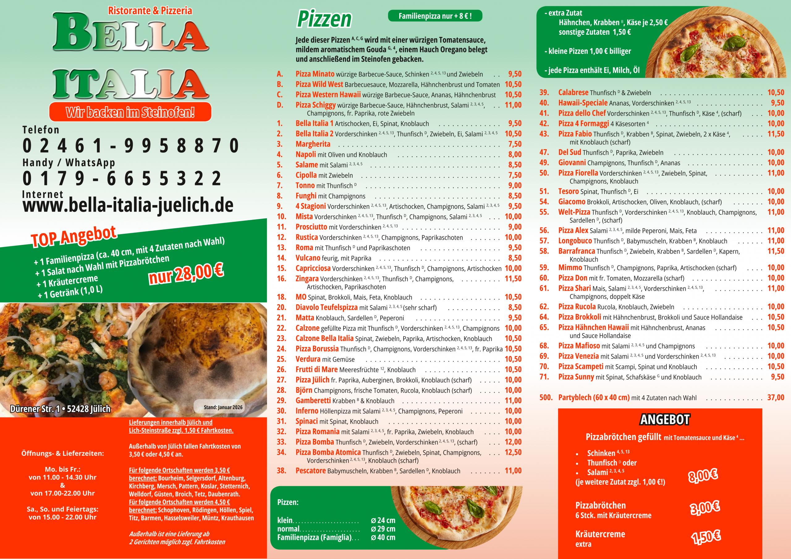 Über uns Angebote 02461 9958870 oder 0152 19408212 Herzlich Willkommen! Speisekarte Öffnungszeiten Über uns Seit über einem Jahrzehnt engagieren wir uns für alle Liebhaber der italienischen Küche (und alle die es noch werden wollen) in Jülich und Umgebung. Kundenzufriedenheit und die Verwendung frischer Zutaten stehen dabei an erster Stelle. Speisekarte Bildergalerie